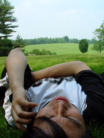 在一望無際的大草原睡午覺被學妹電話吵起來