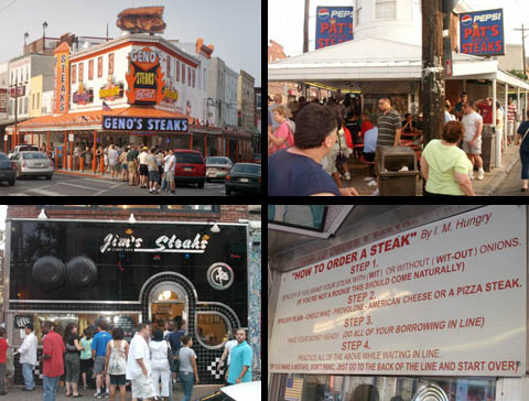 左上:Geno's Steak 右上:Pat's Steak 左下:Jim's Steak