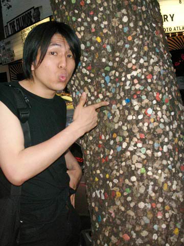 南街上很多行道樹都被貼滿各色口香糖 也蔚為一種特色了